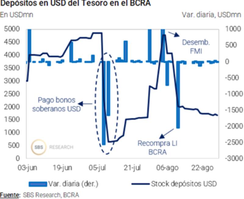 Según indicaron desde Grupo SBS, al 29 de agosto, los depósitos en dolares del Tesoro se ubican en u$s 1685 millones.