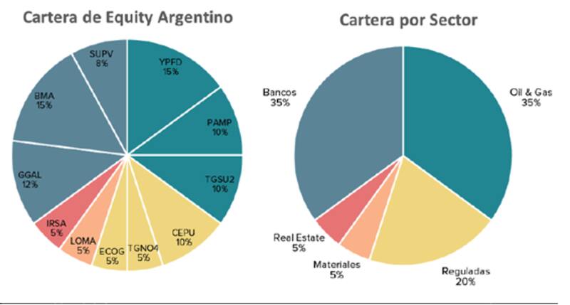 "A la espera de la finalización de la temporada de balances mantenemos nuestra cartera y estrategia sin modificaciones dado que mantiene una buena performance incluso en momentos de baja, logrando defensividad a través del 20% destinado a reguladas. No obstante, el 35% asignado al sector Oil & Gas también a aportado de forma defensiva a la cartera a pesar de la caída que evidencian los precios internacionales del crudo", señalaron.