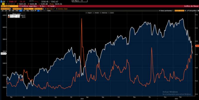 La llegada de Trump y sus medidas provocaron una disparada en lavolatilidad en el mercado, con el VIX tocando su mayor valor desde agosto de 2024.