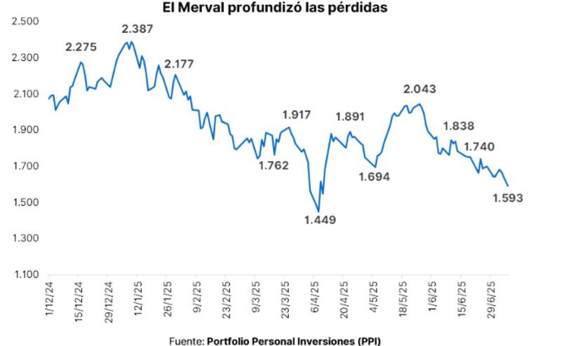 En lo que va del año, el S&P Merval en dólares muestra una caída del 24%, y de esta manera, es la bolsa a nivel global con peor performance en el 2025.