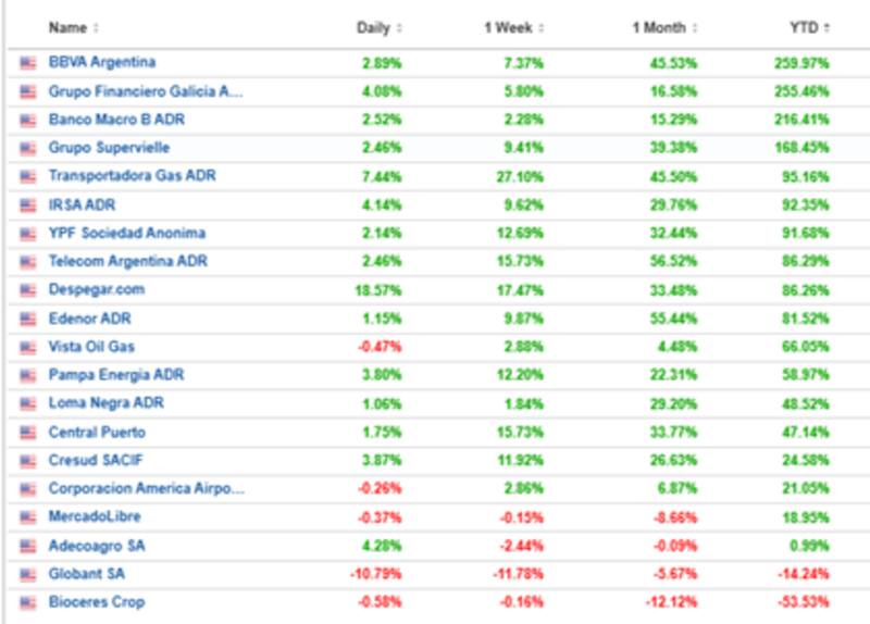 La fuerte baja del riesgo país y el rally en los bonos, terminó contagiando a la renta variable argentina.