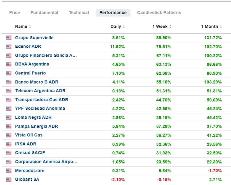 Grupo Supervielle, Edenor, Grupo Financiero Galicia y Banco Macro se encaminan a cerrar octubre con subas de entre 100% y 130% en dólares. Esto los coloca como el mejor mes desde que cada una de estas compañías salió a cotizar en Wall Street.