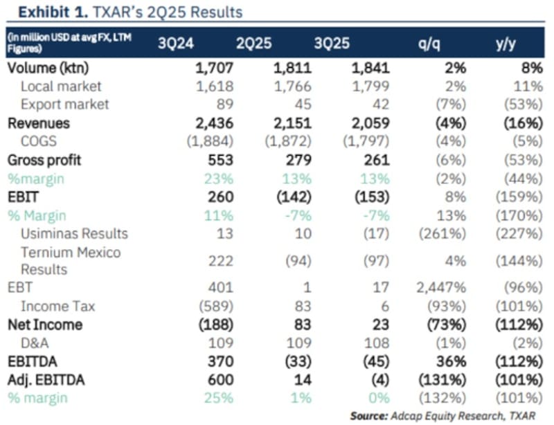 "Prevemos una recuperación hacia adelante y durante 2026, impulsada por la normalización de los niveles de producción, una demanda interna estable y precios regionales del acero bajos pero sostenidos", dijo Matías Cattaruzzi, analista de renta variable de Adcap Grup Financiero.