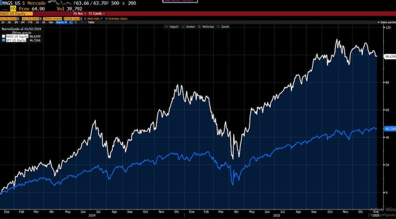 “Luego de varios años con una performance dominada por las grandes tecnológicas, las valuaciones exigentes de las Magnificent 7 vuelven más vulnerable ese posicionamiento y empiezan a habilitar una rotación hacia segmentos con múltiplos más razonables”, afirmaron.
