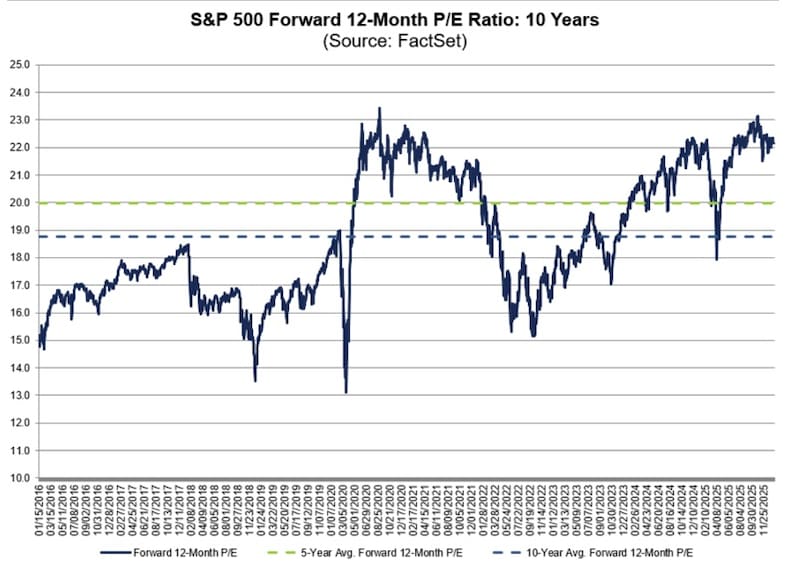 De hecho, cuando se compara el actual nivel de valuación del índice, el mismo se ubica lejos de su promedio de 5 años de 20 veces ganancias y más lejos aún de su promedio de 10 años de 18,5 veces ganancias, según datos de FactSet.