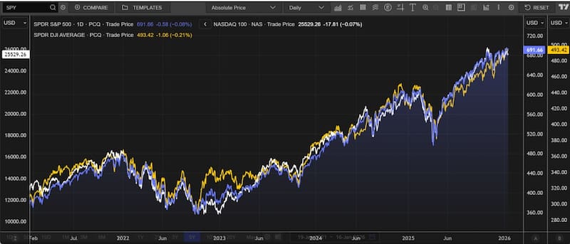 Tanto el Dow Jones, el S&P500 como el Nasdaq se ubican cerca de sus valores mas altos en su historia, luego de tres años de importantes ganancias y de dos dígitos de manera consecutiva.