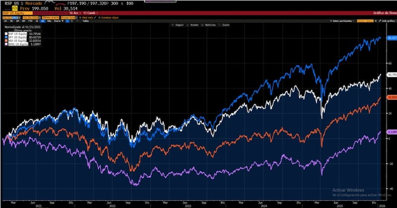 “La alta concentración en el S&P500 es un riesgo de doble filo. El S&P 500 ya no representa a la economía estadounidense en su totalidad, sino al sentimiento sobre la Inteligencia Artificial y las tasas de la Fed. Un mal balance de dos o tres nombres puede arrastrar a todo el mercado, independientemente de la salud de los otros 490 componentes”, advierten.