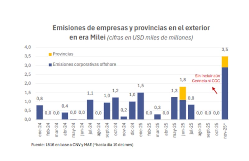 Tras el 26-O, dice Barrio, la combinación de un riesgo país debajo de los 600 puntos y el boom de colocaciones privadas y sub-soberanas terminaría por despejar esas dudas y consolida la expectativa de que los vencimientos de 2026 y 2027 podrán ser refinanciados sin sobresaltos.