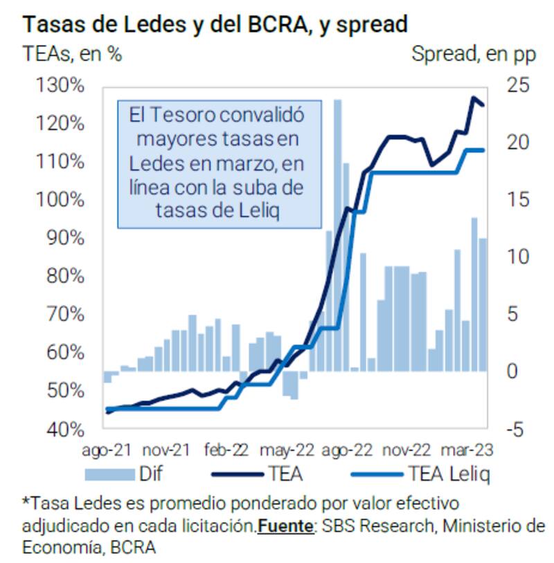 El Tesoro convalidó mayores tasasen Ledes en marzo, en línea con la suba de tasas de Leliq