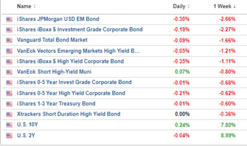 Los bonos emergentes caen 2,66% en la última semana, influenciados por la expectativa de mayores subas de tasas por parte de la Fed en las reuniones que vienen.