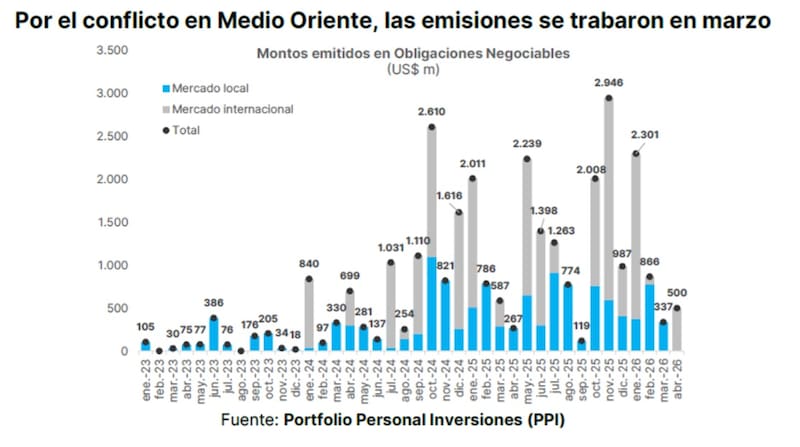 Sin embargo, desde el estallido de la guerra, las colocaciones cayeron a u$s 866 millones en febrero y u$s 337 millones en marzo u$s 500 millones en abril.