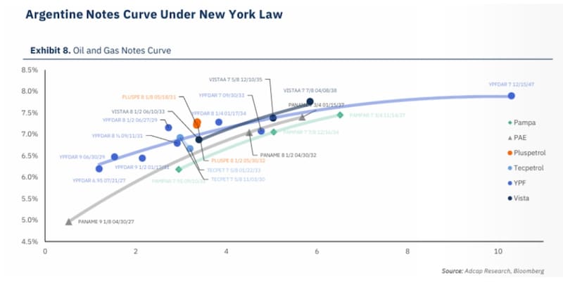 “Allí se ubican emisiones con duraciones en torno a 4 a 7 años, como Telecom 2031 o Vista 2033, que hoy ofrecen rendimientos en la zona de 6,5% y 7%. A pesar de incorporar parcialmente el riesgo político más allá de 2027, lo relevante es que, aún considerando ese riesgo, las compañías muestran fundamentals sólidos. En particular el sector energético, presentando balances robustos, bajos niveles de apalancamiento relativo y una dinámica de generación de caja favorecida por el desarrollo de Vaca Muerta”, afirmó.