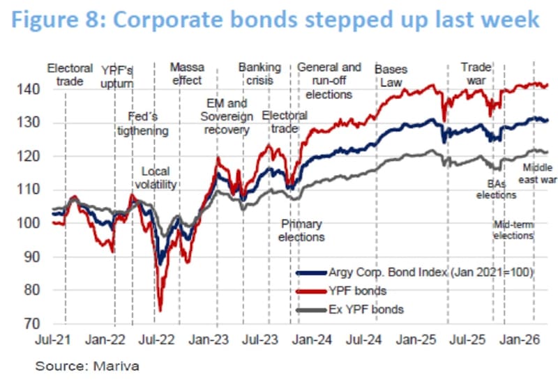 “El tramo corto de la curva corporativa se beneficia de la demanda cautiva de importadores y fondos que buscan flujos en dólares MEP, lo que genera una presión compradora sostenida que comprimió significativamente las tasas cortas desde la previa electoral legislativa”, indicó.