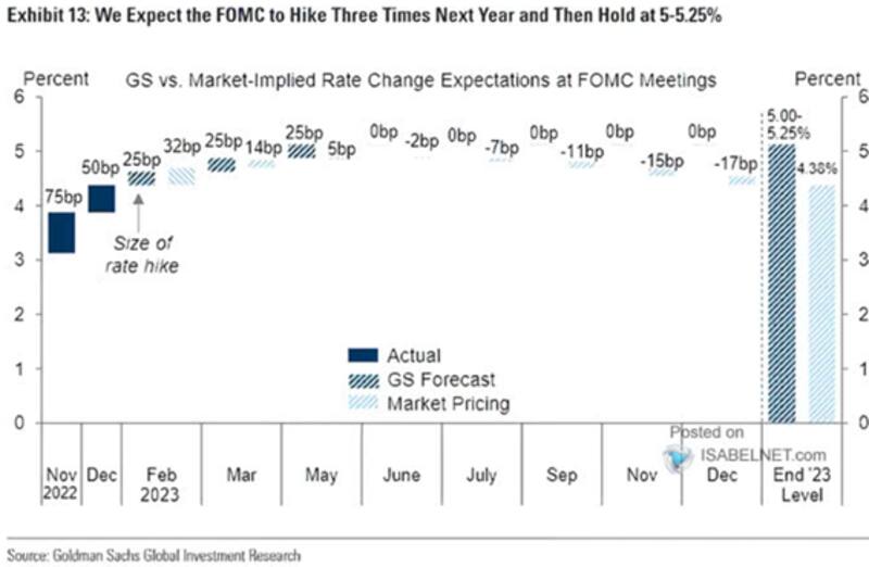 Los analistas de Goldman Sachs, la Fed elevará la tasa tres veces este año en 75 puntos básicos, buscando cerrar el año en una tasa terminal de entre 5% a 5,25 por ciento.