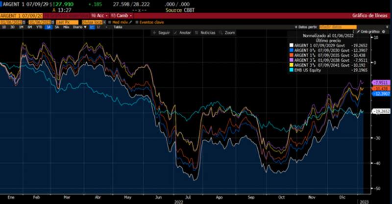"Si se disipa la preocupación externa respecto a la inflación, y a nivel local, seguimos avanzando hacia el escenario de candidatos moderados que se reconfiguró a partir de la salida de la oferta electoral de Cristina Fernández de Kirchner, los bonos soberanos en dólares pueden volver rápidamente a los niveles vistos entre noviembre de 2021 y mayo de 2022", dijo.