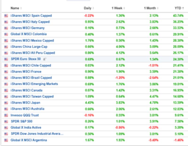 La bolsa de España es la que más sube en el año, con una ganancia de 44%. Además, le siguen las acciones de Italia (36%), Alemania (33%), Colombia (30%) y México (28%).