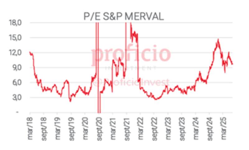 En medio de la volatilidad del mercado, los ratios de valuaciones de las acciones también se vieron golpeados. Hoy el Price Earning del S&P Merval se ubica en niveles de 9 veces ganancia, cuando en enero operaba con casi 15x veces ganancias.