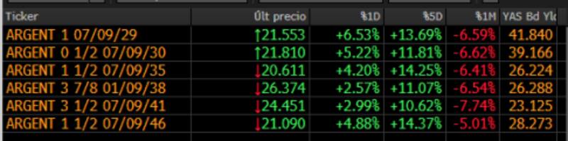 En la última semana, los globales evidencian subas de entre 13% y 14% en los distintos tramos de la curva y han logrado reducir al 7% y 5% las pérdidas acumuladas en el último mes.