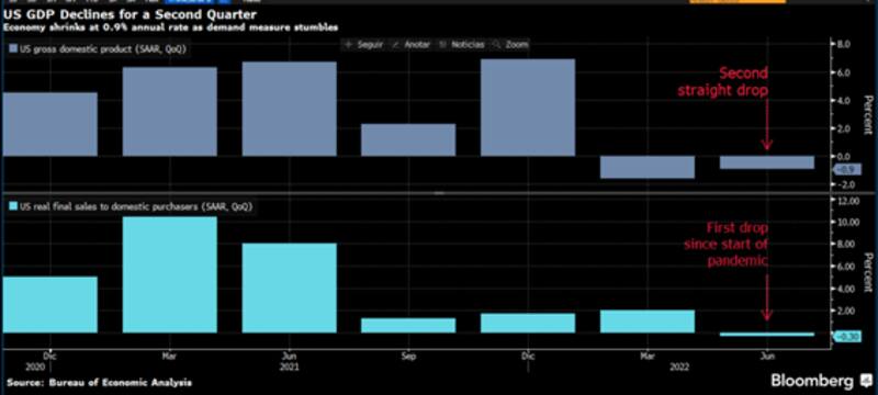 Concretamente la economía de EE. UU. se contrajo por un segundo trimestre, alimentando los temores de una recesión