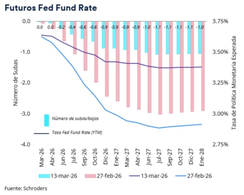 Antes del inicio de la guerra, el mercado esperaba ver dos recortes de tasas este año y otra baja de tasas en 2027.