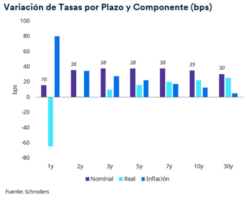 Todos los tramos de la curva vieron una suba, a la vez que el mercado asigna una mayor probabilidad inflacionaria.