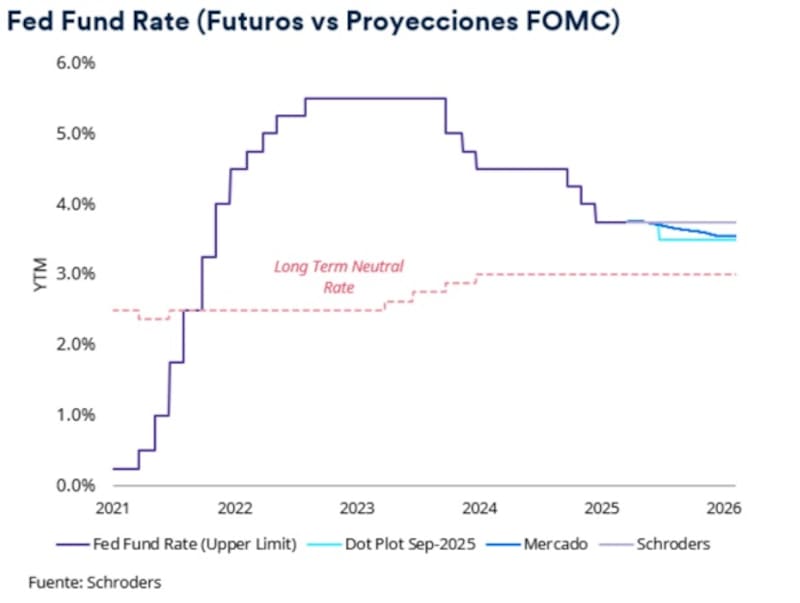 El mercado ahora solo ve un recorte de tasas en todo 2026, el cual se llevaría a cabo recién en diciembre y de 25 puntos básicos.