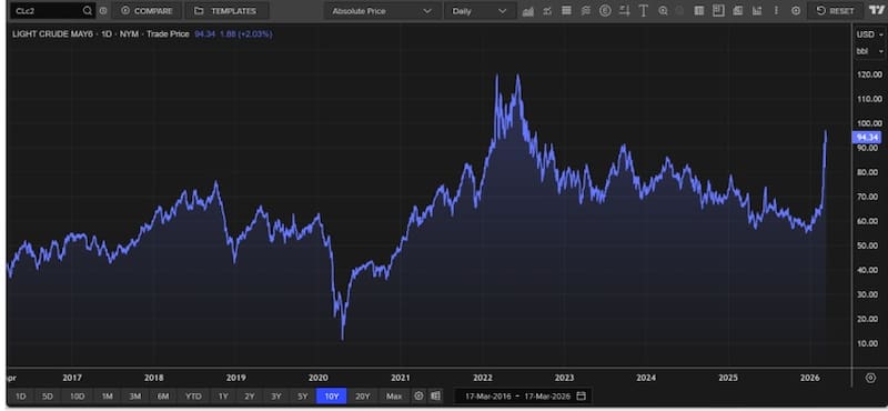 Damián Vlassich, Team Leader de Estrategias de Inversión en IOL, explicó que es evidente que el rally del crudo provocado por el conflicto en Medio Oriente va a generar un impacto en precios, lo que genera una complicación en el trabajo de la Reserva Federal y podría generar un replanteo acerca del sendero de recortes para este 2026.