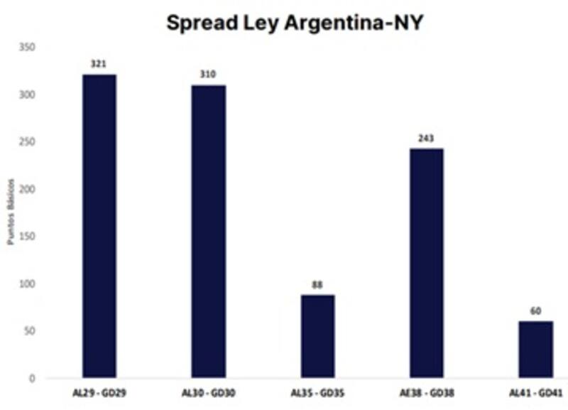 De esta manera, se disparó el spread por legislación y hoy los bonos de ley local rinden por encima del 20%. Los analistas ven a dicho spread como excesivo y encuentran oportunidades de los títulos de ley argentina.