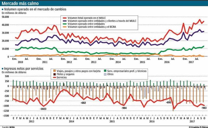 El volumen negociado en el MULC fue de u$s 44.206 millones, con un promedio diario superior a los u$s 2.000 millones lo que implicó un aumento de 55% respecto del mismo mes del 2016.