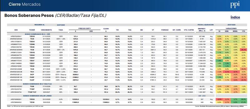 Tras días de volatilidad, el balance en la semana es de un mercado en pesos que muestra estabilidad, con leves cambios a lo largo de los últimos días, e incluso con ganancias en títulos que ajustan por CER.