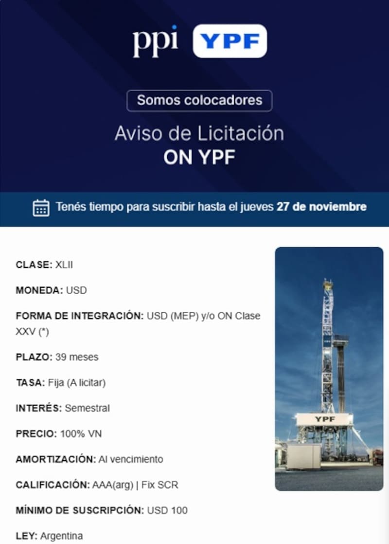 Aprovechando el buen momento de colocaciones corporativas, YPF sale esta semana a emitir deuda a 39 meses en dólares.