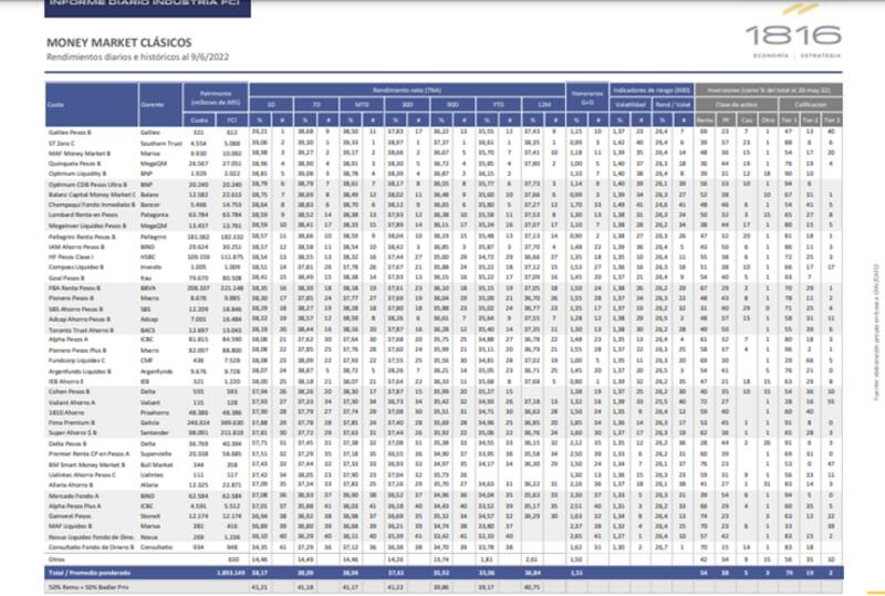 "El universo de inversiones se limita a plazo fijo (simple y pre-cancelables), caución bursátil y cuentas remuneradas en bancos. En mayo, nuestro MAF money market se posicionó entre los top performers de la industria, terminando el mes con rendimientos diarios de 38,58% TNA. Actualmente, se encuentra rindiendo 39,23% TNA", dijo.