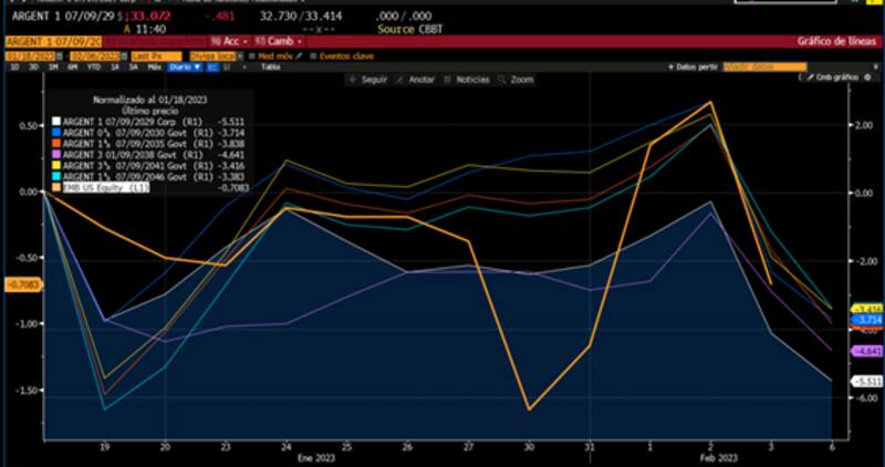 De esta manera, desde que Massa anunció el programa de compra de bonos, y dada la volatilidad reciente, los bonos argentinos pierden entre 3,3% y 5%. Durante ese mismo periodo, los bonos de emergentes cayeron 0,7 por ciento.