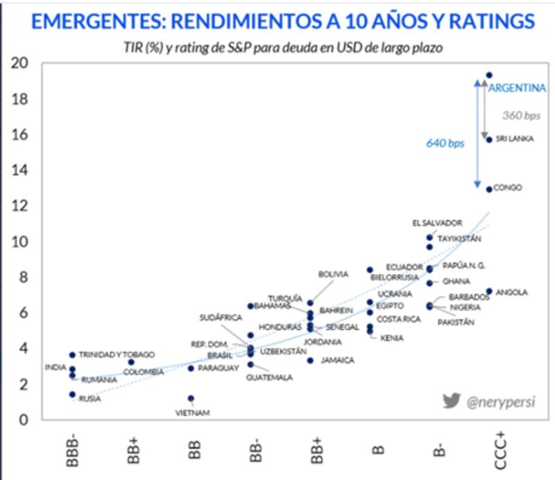 Estos dos países son comparables ya que tienen una calificación crediticia similar al de Argentina, de CCC+.
