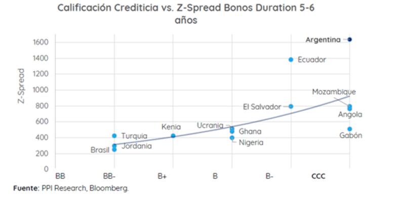 Estas tasas son más del doble de lo que rinden países como Irak, Camerún, Pakistán, El Salvador o Costa Rica. Y la probabilidad de default de la deuda local es del 95% a 10 años.