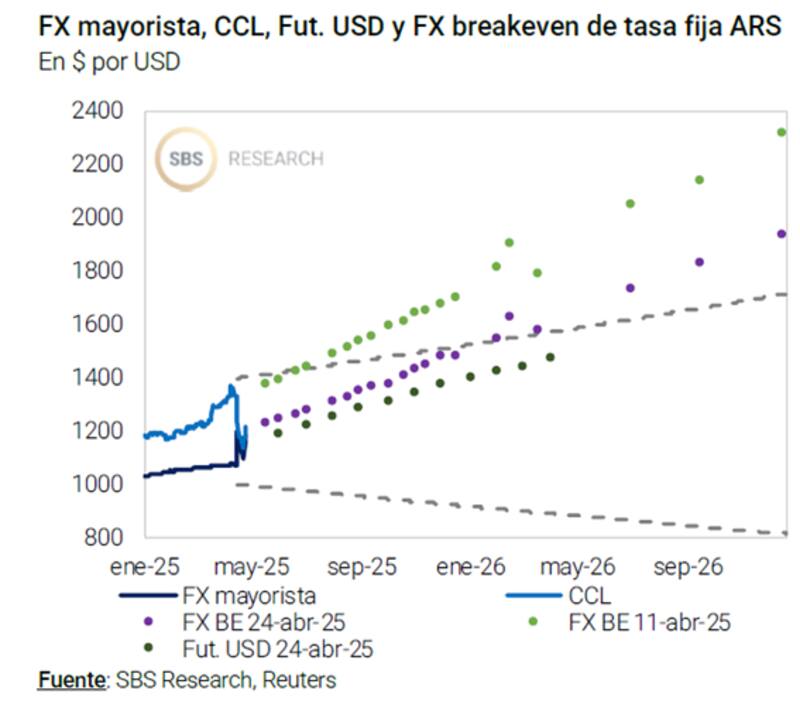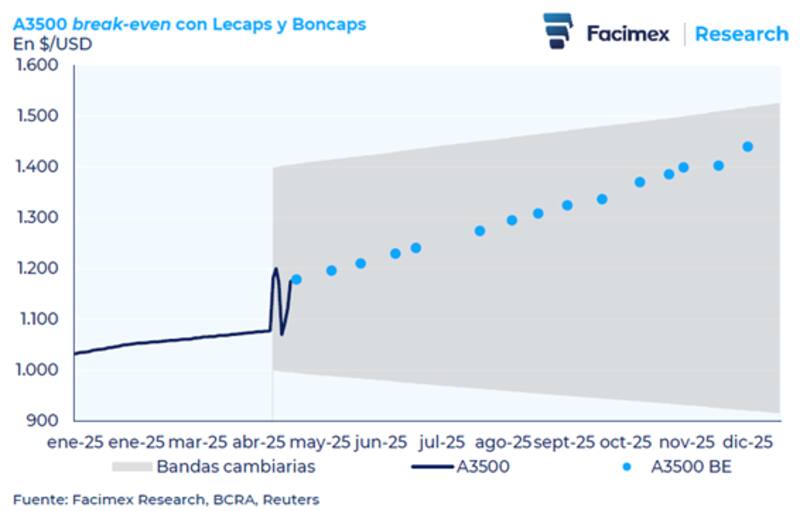 Franco indicó que si el inversor confía plenamente en que el esquema de bandas se cumplirá, cualquier título en pesos que arroje un dólar breakeven que se ubique por encima de la banda superior tendría, en principio, ganancias de carry trade "aseguradas".
