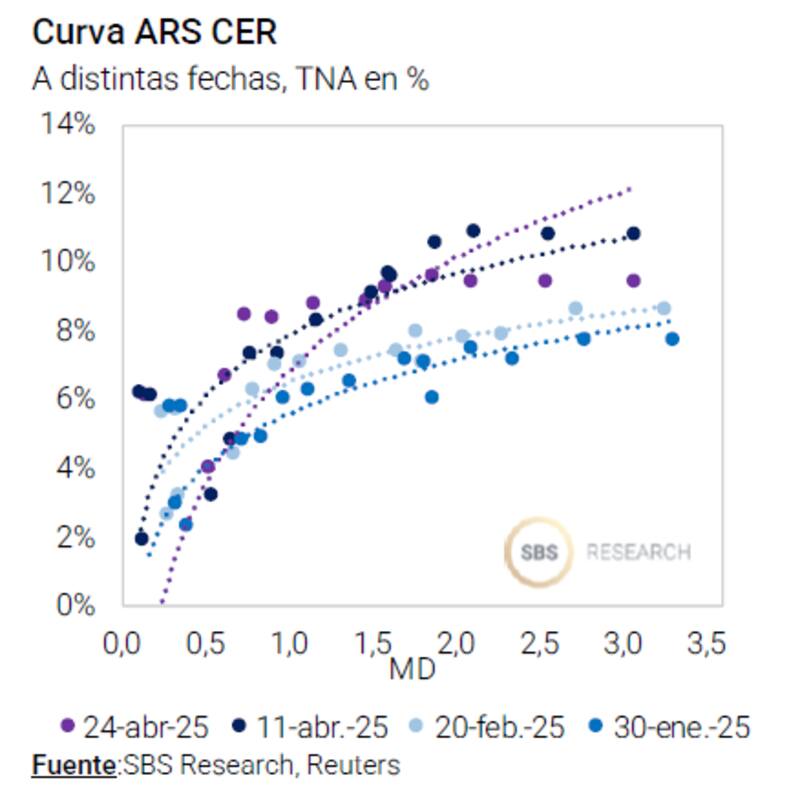 A su vez, resaltó que también ve atractivo en complementar esta exposición con Boncer del tramo medio, aprovechando que la curva está plana a partir del 2026 y sin tomar mucho riesgo duration ante even-tuales subas de tasas (aunque ayer el equipo económico no dio señales en este sentido).