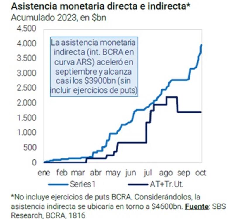 Esto mismo garantiza una mayor asistencia del BCRA al tesoro de manera indirecta, mediante la compra de bonos en pesos en el mercado secundario, tal como viene ocurriendo a lo largo del 2023.