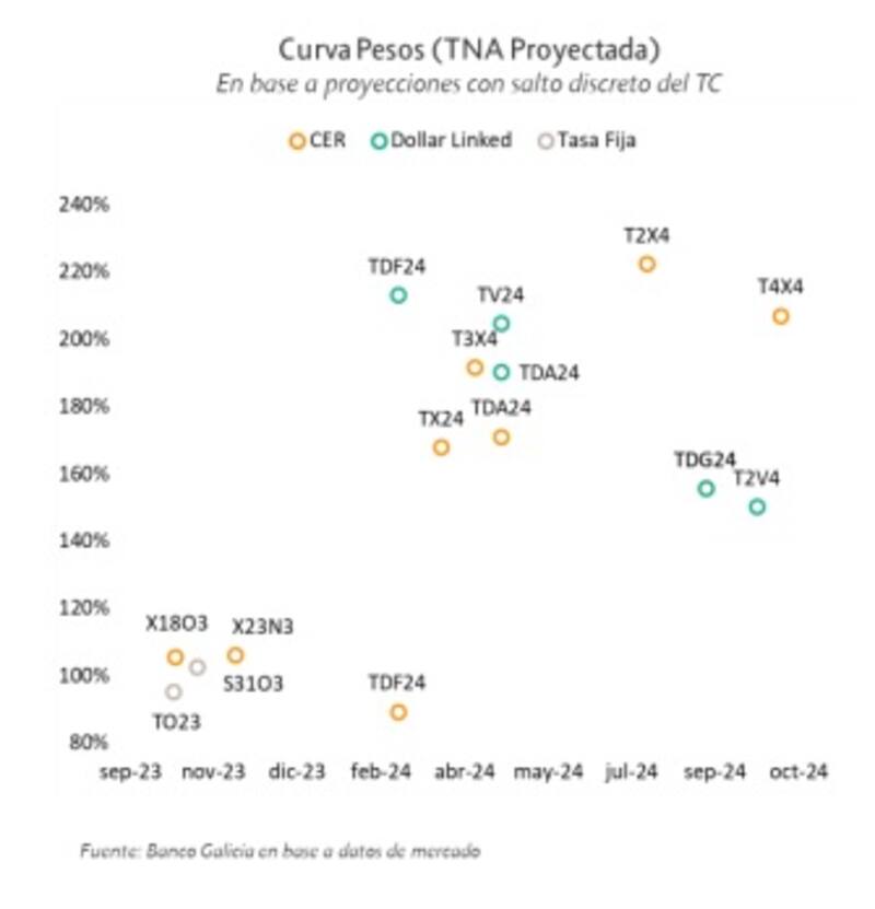 "Para el primer cuatrimestre del año próximo, preferimos el posicionamiento en activos con cobertura cambiaria (dólar linked y duales), ya que estos activos absorberían de manera más eficiente una suba discreta del tipo de cambio. El bono dual TDF24 resulta el más atractivo", detalló.