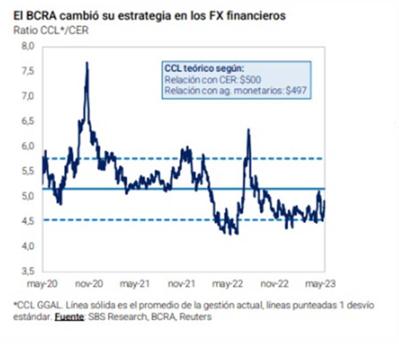 Según sus estimaciones, calculando el dólar CCL en base al CER, debería valer $ 500 y $ 497 en base a los agregados monetarios.