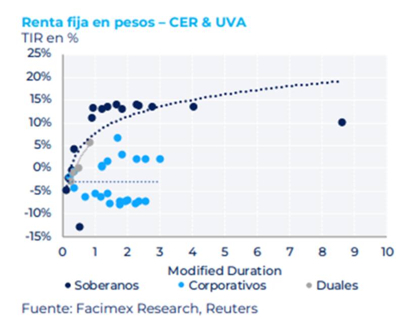 En ese contexto, desde Mariva Asset Management recomiendan a los inversores que se sienten cómodos con el riesgo soberano argentino, tomar posiciones en el tramo corto/medio de la curva CER, que ofrece tasas reales positivas (rendimientos esperados por encima de la inflación) lo cual permite cubrirse frente a la aceleración inflacionaria esperada para los próximos meses.