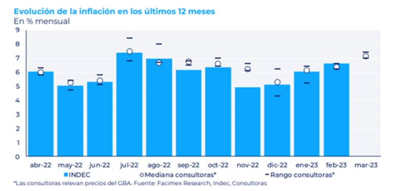 En ese contexto, la atención se centra en la inflación del mes de marzo, que podría estar incluso por encima del 7%.