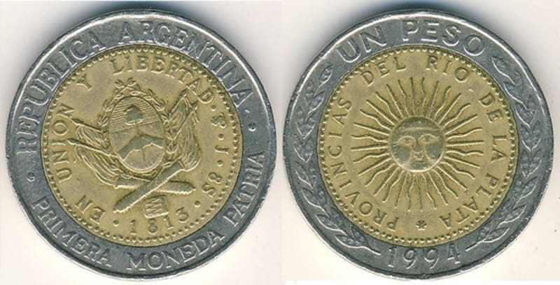 En 1995 el Gobierno argentino encargó la acuñación de una serie de monedas de $ 1 a Inglaterra. Se trataba de una partida de 56 millones, que serían puestas en circulación de inmediato. No fue hasta que se recibió el cargamento que las autoridades notaron que las monedas importadas contenían dicho error.