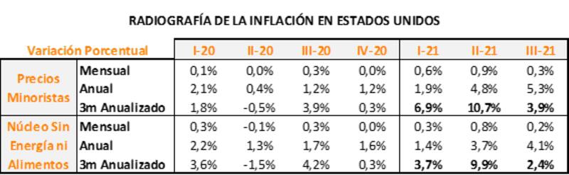 Para Benítez, esto implica que, por ahora, el comportamiento de la inflación ha estado alineado con el análisis de la Reserva Federal, es decir que se sigue mostrando como un proceso transitorio y en parte relacionado a la recuperación de la demanda y el precio de los combustibles (petróleo).