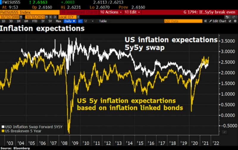 Las expectativas de inflación implícitas en la curva soberana de Estados Unidos se encuentran en su mayor nivel desde 2003.