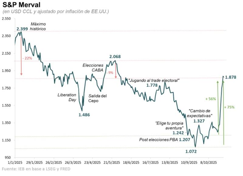 “Creemos que energía, bancos y consumo defensivo podrían liderar la próxima fase de valorización si se confirma un sendero de estabilización fiscal y continuidad del programa monetario. Aun con elevada volatilidad, la mejora en valuaciones y en expectativas de crecimiento sugiere que el equity argentino vuelve a posicionarse como una apuesta táctica atractiva en portafolios regionales, con un horizonte de mediano plazo", detallaron.