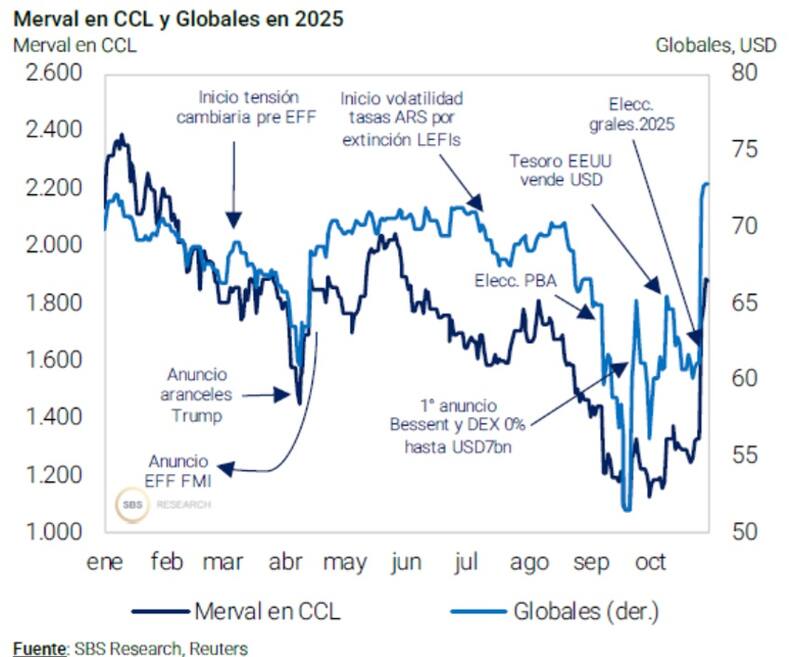 “Debido a la disminución del riesgo país de Argentina de 1.100 pb a 680 pb tras las elecciones, actualizamos los precios objetivo de las empresas que analizamos. Reiteramos nuestras recomendaciones de compra y elevamos los precios objetivo para todas las empresas”, dijeron.