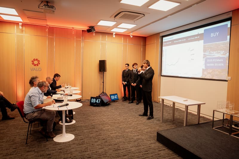 Los equipos finalistas presentaron sus análisis frente a un jurado compuesto por líderes del sector financiero: Gustavo Araujo, head of research en Criteria; Matías Cremaschi, CFA, chief investment officer en Delta Asset Management; Fabricio Gatti, investment manager en Novus Asset Management; y Nicolás Max, director de asset management en Criteria.