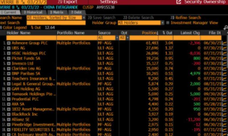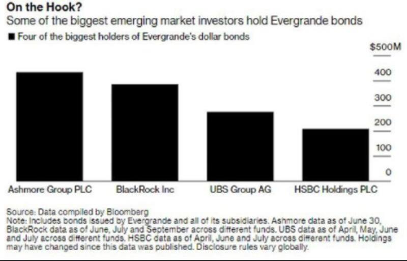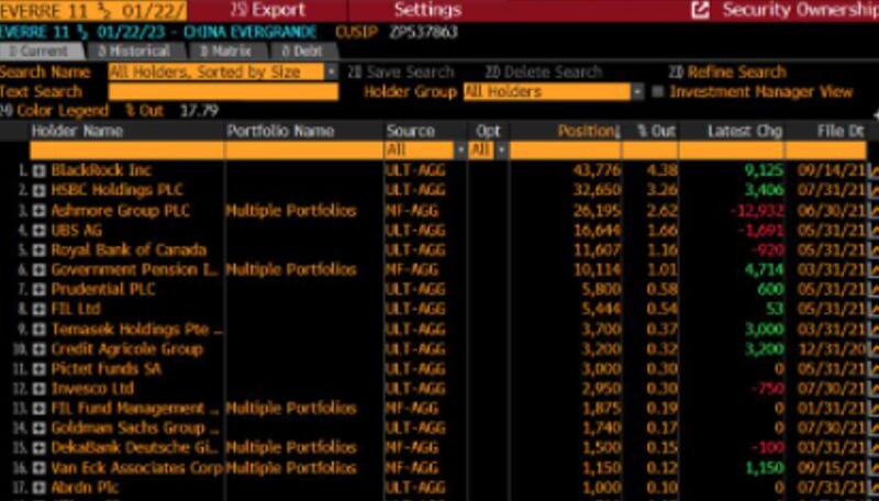 En el caso del bono a 2023, los acreedores son los mismos, con BlackRock liderando las tenencias de deuda de Evergrande, con el 4,4% del total, seguido por HSBC (3,26%), Ashmore (2,62%) y UBS (1,66%).