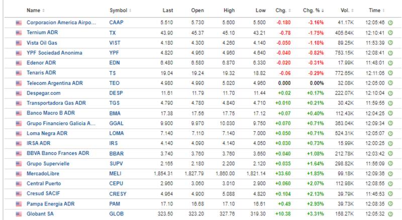Del lado perdedor se encuentran Corporación América, Ternium y Vista Oil, con bajas del 3,1%, 1,75% y 1,1% respectivamente.
